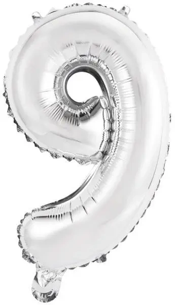 Mini Cyfra 9 - Srebrny Balon Foliowy