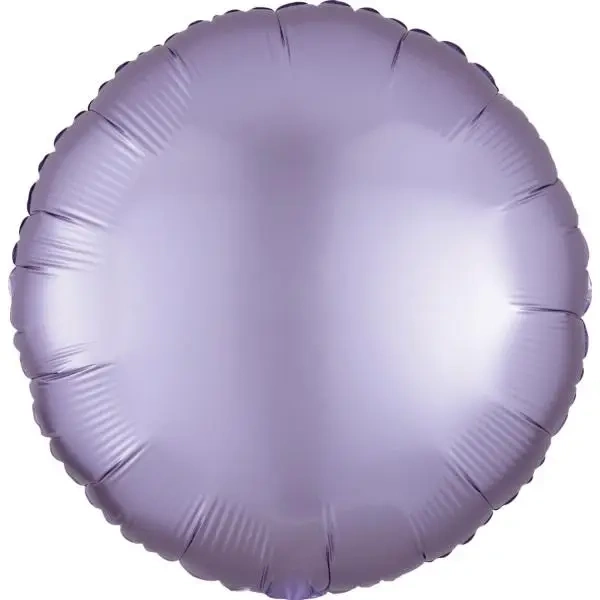 Okrągły balon foliowy w kolorze delikatnego, pastelowego lila, o średnicy 43 cm. Idealny do dekoracji każdej uroczystości, nada wnętrzu wyjątkowego charakteru dzięki eleganckiemu, satynowemu wykończeniu.