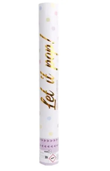 Armatka o długości 40 cm, wypełniona jest różnobarwnymi, okrągłymi kawałkami papieru. Dzięki temu każdy wystrzał zamieni Twoją przestrzeń w magiczną, kolorową galę.