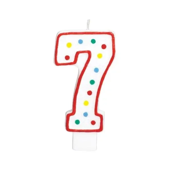 Świeczka urodzinowa cyferka 7 biała w kropki - Amscan