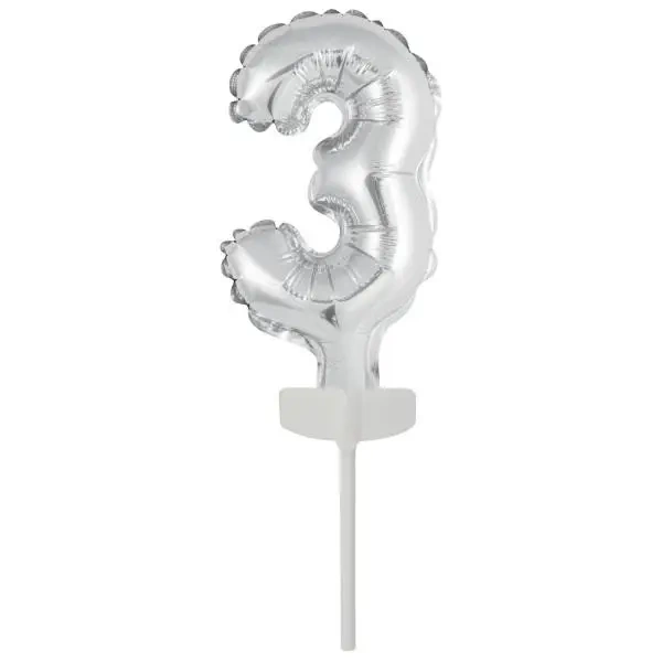 Balon foliowy mini cyfra 3 srebrna 7x12cm - Amscan