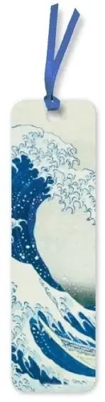Pozłacana zakładka do książki, wykonana z wysokiej jakości papieru i ozdobiona elegancką wstążką. Motyw zakładki nawiązuje do słynnego dzieła sztuki "Wielka fala w Kanagawie".