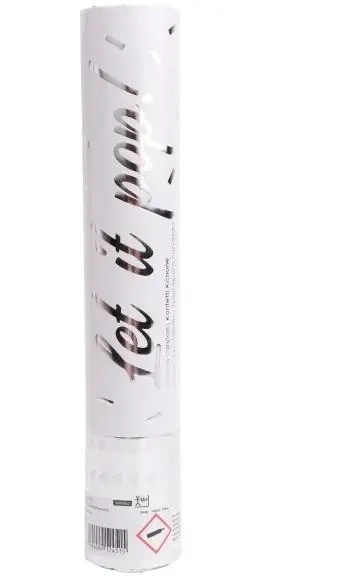 Przedstawiamy armatkę konfetti, która stanie się gwiazdą każdej imprezy! Wypełniona srebrną foliową konfetti w kształcie czterokątów, ta armatka o długości 28 cm gwarantuje niezapomniane efekty wizualne.