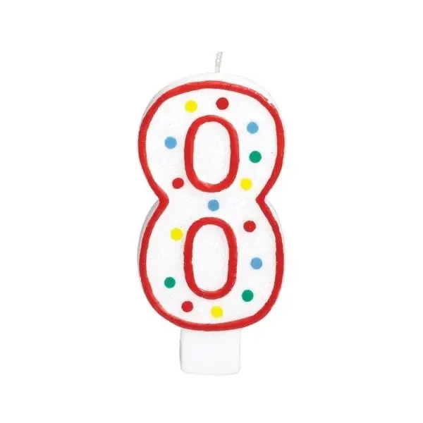 Świeczka urodzinowa cyferka 8 biała w kropki - Amscan