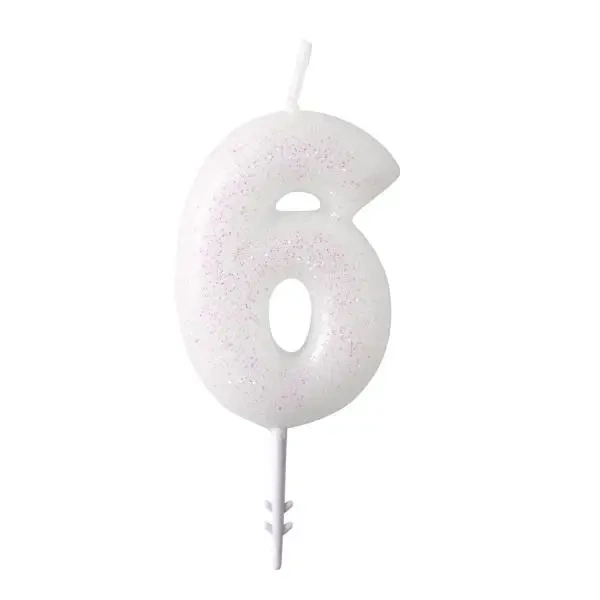 Ozdobna Świeczka Cyferka "6" - Błyszcząca