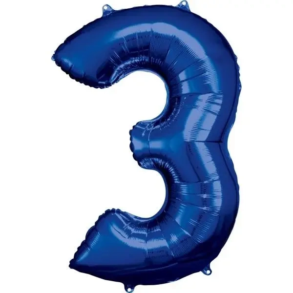 Balon foliowy cyfra 3 niebieska 58x86cm - Amscan