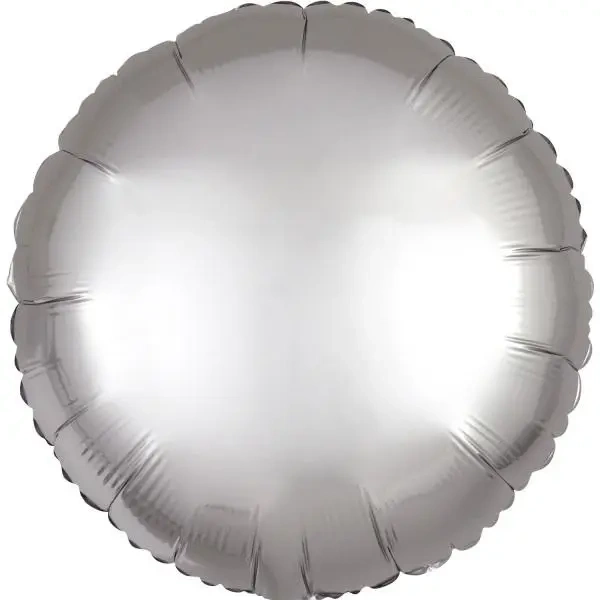 Okrągły balon foliowy o średnicy 43 cm, wykonany w standardzie satynowym. Posiada elegancki srebrny kolor, który doskonale sprawdzi się na różnego rodzaju przyjęciach i uroczystościach.