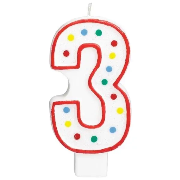 Świeczka urodzinowa cyferka 3 biała w kropki - Amscan