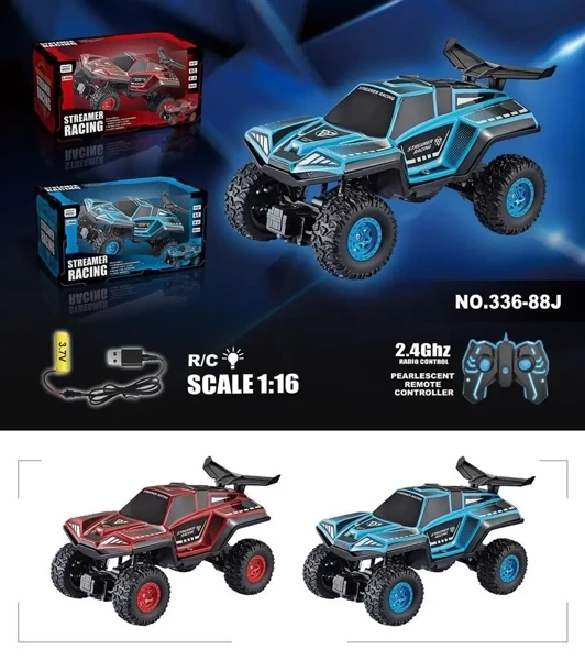 Ten samochód nie tylko dostarczy wiele zabawy, ale także zachwyci swoimi świetlnymi efektami. Świecący element dodaje mu atrakcyjności, czyniąc go wyjątkowym na tle innych zdalnie sterowanych pojazdów.