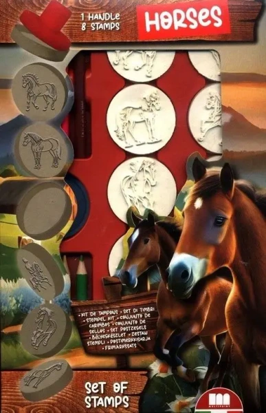 W zestawie znajduje się wszystko, co niezbędne do twórczej zabawy: 8 różnorodnych pieczątek, poduszeczka do tuszu oraz 10 arkuszy papieru. Dodatkowo oferuje on 8 kolorowych pisaków oraz poręczny uchwyt.