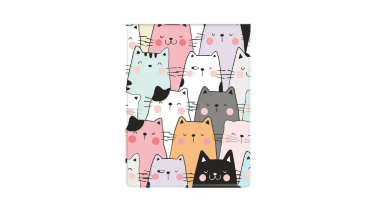 Ta estetyczna okładka została wykonana z wysokiej jakości folii PVC i zdobi ją pełny, przyciągający wzrok nadruk z motywem kotów. Wewnętrzna warstwa została usztywniona tekturą, co zapewnia trwałość i dodatkową ochronę.