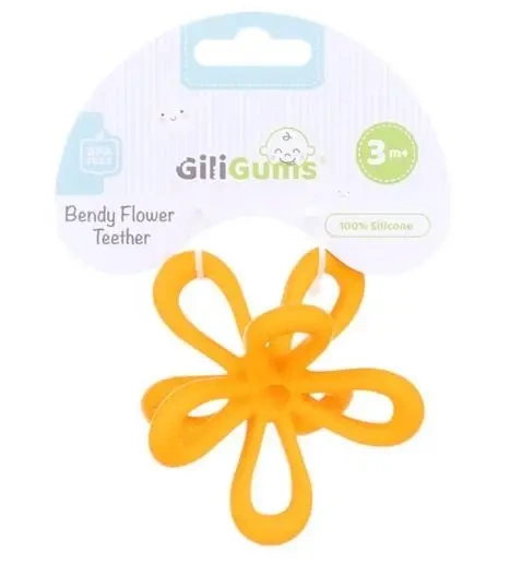 Radosny gryzak z silikonu w formie kwiatu, stworzony z myślą o najmłodszych. Idealnie przyniesie ulgę podczas ząbkowania, rozpieszczając delikatne dziąsła malucha. Dzięki praktycznym pętelkom, nasz produkt łatwo dopasuje się do małych dłoni, umożliwiając pewny chwyt.
