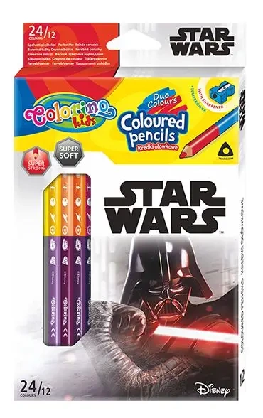 Kredki ołówkowe trójkątne Colorino Kids 24 kolorów 12 sztuk z temperówką Star Wars - PATIO