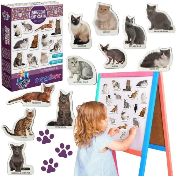 Zestaw magnesów "Rasy kotów" to idealna propozycja dla młodych miłośników zwierząt. Dzięki niemu dzieci nie tylko wzbogacą swoją wiedzę, ale także rozwija wiele cennych umiejętności, czyniąc naukę przyjemnością!