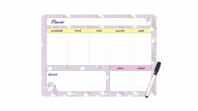 Magnetyczny Planer Tygodniowy z Motywem Jednorożca