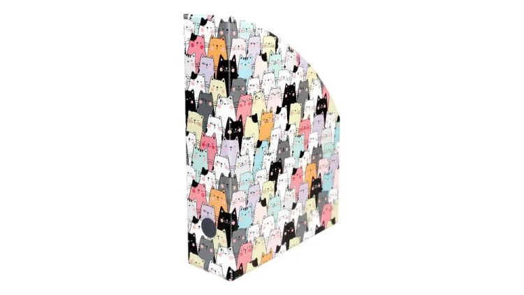 Ten pojemnik na dokumenty został wykonany z wysokiej jakości folii PVC, co gwarantuje jego trwałość i stylowy wygląd. Wyróżnia się pełnym, dekoracyjnym nadrukiem, który dodaje mu uroku. Wnętrze pojemnika jest usztywnione solidną tekturą, co zapewnia stabilność i wsparcie dla przechowywanych dokumentów.