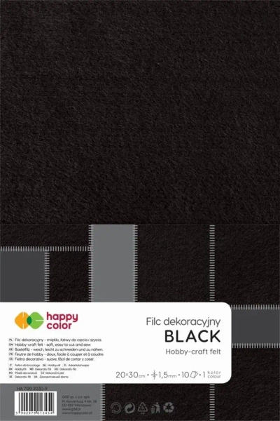 Filc dekoracyjny czarny 5szt HAPPY COLOR - GDD