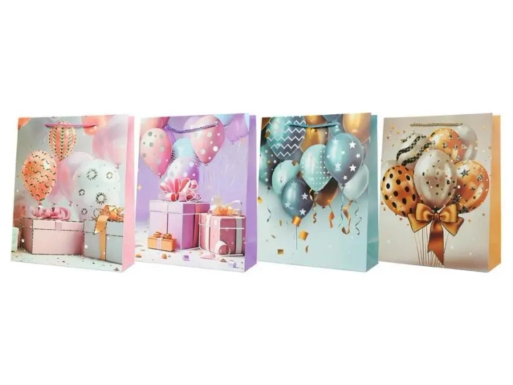 Torebka papierowa z nadrukiem. Torebka ma mocny uchwyt oraz zawieszkę. Wymiar: 265mm x 325mm x 135mm (szer. x wys. x gł.)
