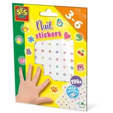 Firma SES Creative stworzyła te naklejki specjalnie z myślą o małych rączkach najmłodszych. Są bardzo proste w aplikacji i szybkie do usunięcia. W zestawie znajduje się aż 198 kolorowych naklejek, które z łatwością można przyczepić do paznokci za pomocą wody.