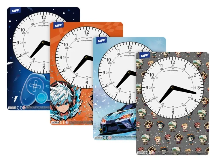 Zegar dziecięcy wykonany z tektury z kolorowym obrazkiem. Jest to doskonała pomoc dydaktyczna, która pomaga maluchom w nauce odczytywania czasu. Produkt szczególnie polecany dla dzieci w wieku przedszkolnym oraz wczesnoszkolnym, gdyż stanowi niezastąpione wsparcie w edukacji pierwszoklasistów.