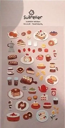 Oto wyjątkowe naklejki ozdobne z serii "Jedzenie Słodycze #4", pochodzące od renomowanej koreańskiej marki Suatelier. Te atrakcyjne naklejki samoprzylepne oferują szerokie możliwości dekoracyjne. Idealnie nadają się do personalizacji notesów, kalendarzy, planerów, a także ozdabiania telefonów, kartek i innych przedmiotów.