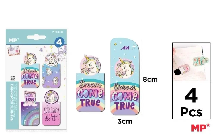 Odkryj niezwykłe zakładki magnetyczne, które wzbogacą Twoją kolekcję akcesoriów do książek. W opakowaniu znajdziesz cztery różnorodne zakładki z motywem bajkowych jednorożców, które dodadzą uroku Twoim stronom. Ich magnetyczne właściwości zapewnią, że nie zgubisz już nigdy swojego miejsca w czytanej lekturze.