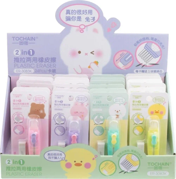 Gumka do ołówka wysuwana z miotełką i zapasem mix - Tochain