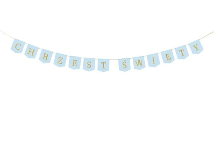 Przepiękny baner "Chrzest Święty" stworzony z papieru w subtelnym odcieniu jasnego niebieskiego z eleganckim, złotym napisem. W zestawie znajduje się również złoty sznurek o długości około 2.5 metra. Baner przeznaczony jest do samodzielnego złożenia, co pozwala na pełne dopasowanie elementów do własnych potrzeb.