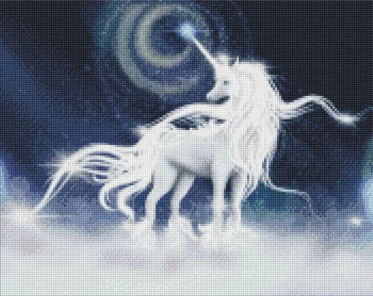 Diamentowa mozaika - Biały jednorożec 40x50 cm