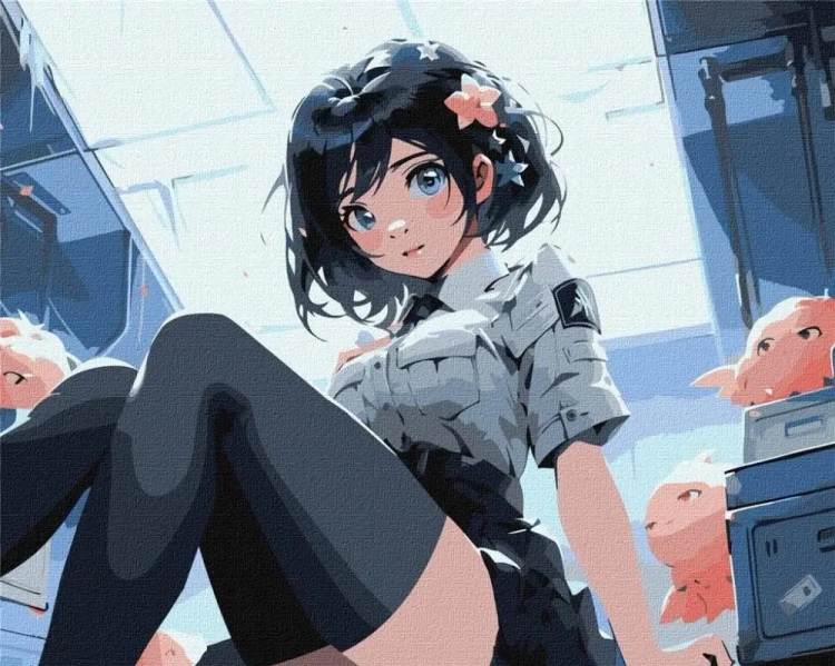 Kreatywny zestaw z uroczą brunetką na płótnie obejmuje: