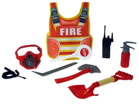 Prezentujemy pełny zestaw strażacki, w skład którego wchodzi wygodna, estetyczna kamizelka wykonana z PVC. Komplet charakteryzuje się doskonałymi wymiarami (39cm x 33cm x 5cm), które sprawiają, że zestaw jest wygodny do przechowywania i używania. Uwaga! Produkt idealny dla wszystkich małych miłośników akcji i zabawy w stylu "ratuję świata".