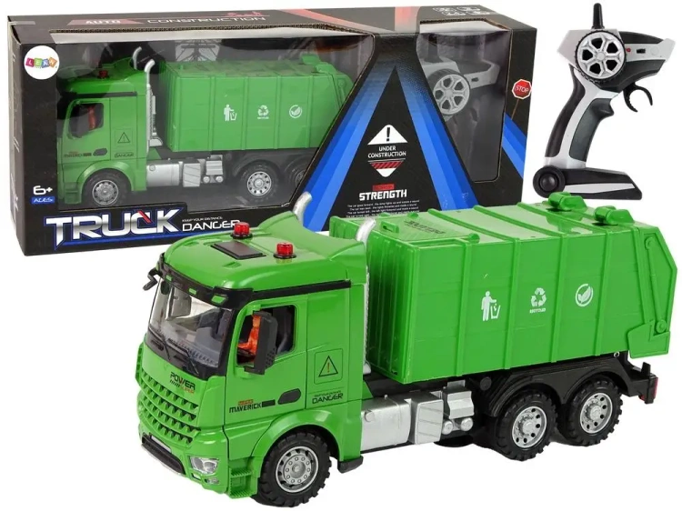 Śmieciarka zdalnie sterowana zielona - Leantoys