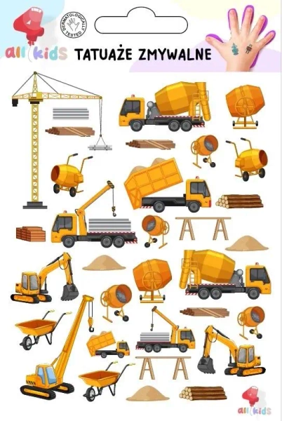 Tatuaże zmywalne dla dzieci Maszyny budowlane - All4Kids