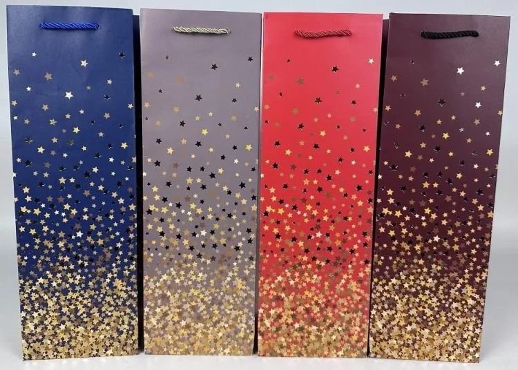 Elegancka torebka przeznaczona do pakowania butelek, wykonana z solidnego kartonu o gramaturze 210 g.