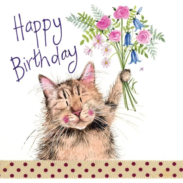 Karnet Urodziny S162 Kot z bukietem - Alex Clark