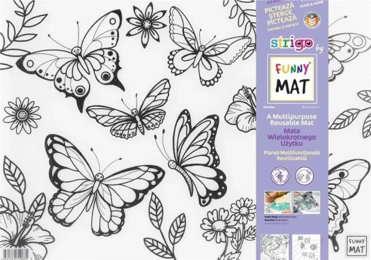 Prezentujemy wielokrotnego użytku transparentną matę z uroczym wzorem motylków o wymiarach 48x33,5 cm. Ten innowacyjny produkt stworzony został z myślą o rozwoju wyobraźni oraz kreatywności, jednocześnie pełniąc funkcje edukacyjne. Idealna do rysowania, malowania i nauki.