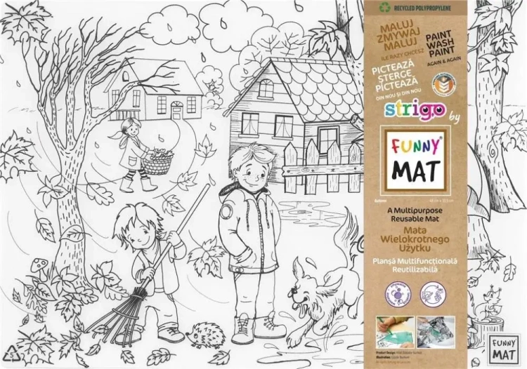 Odkryj wodoodporną białą matę Jesień Funny Mat, której wymiary wynoszą 48x33,5 cm. Jest to idealne narzędzie nie tylko do rysowania i malowania, ale również do nauki. Produkt ten znakomicie rozwija wyobraźnię oraz wspomaga kreatywność, pełniąc przy tym funkcje edukacyjne. Dodatkowo, mata została wykonana z materiałów recyklingowanych, co czyni ją przyjazną dla środowiska.