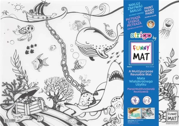 Mata „Podwodny świat” od Striga w rozmiarze 48x33,5 cm to wyjątkowa, wielokrotnego użytku przestrzeń stworzona z myślą o rozwijaniu kreatywności i nauce przez zabawę. Z myślą o różnorodnych aktywnościach, takich jak rysowanie czy malowanie, stanowi idealny wybór do rozwijania wyobraźni.