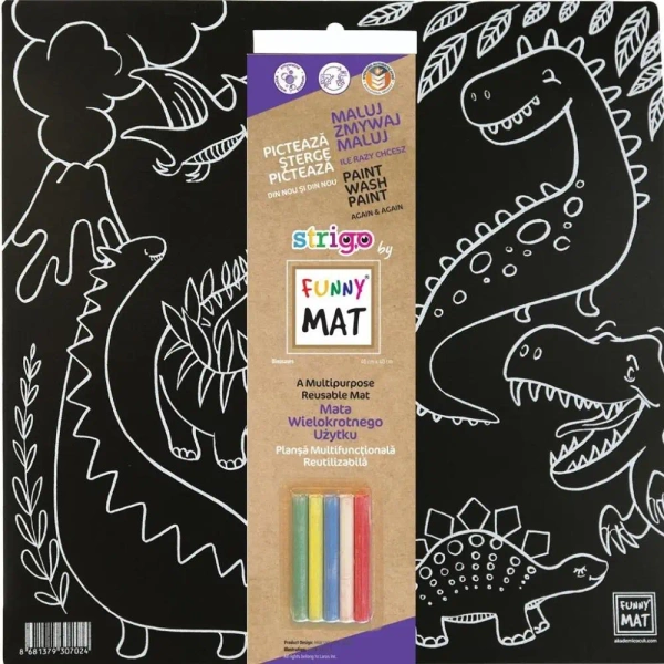 Mata czarna + kreda Dinozaury Funny Mat STRIGO