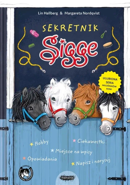 Wspaniała książka, do której nie tylko możecie wpisywać informacje o sobie, swoich ulubionych koniach, ale też rozwiązywać zagadki, bawić się i uczyć! Mnóstwo faktów o koniach i jeździe konnej, a do tego historia narodzin Sigusia oraz najzabawniejsze i najstraszniejsze wspomnienia ze stajni PSIKUS. Seria o przygodach Sigge stała się bestsellerem nie tylko w Szwecji. Jej autorka Lin Hallberg mieszka w małym szwedzkim gospodarstwie, gdzie hoduje kuce szetlandzkie. Zanim zaczęła pisać książki, pracowała jako instruktorka jazdy konnej.