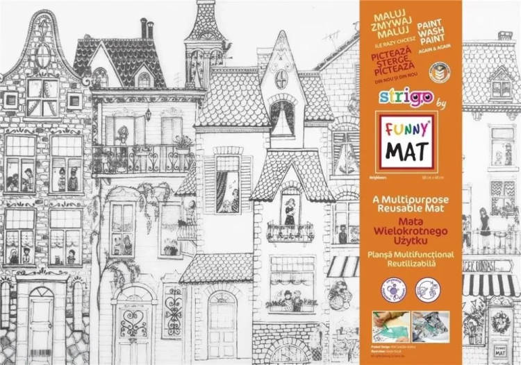 Zapraszamy do odkrycia transparentnej maty Funny Mat z motywem budynków sąsiedzkich o wymiarach 68x48 cm. Jest to wyjątkowa, wodoodporna mata, której można używać wielokrotnie do rysowania, malowania i nauki. Dzięki niej dzieci mają szansę rozwijać swoją wyobraźnię oraz kreatywność, a także czerpać korzyści z jej funkcji edukacyjnej.