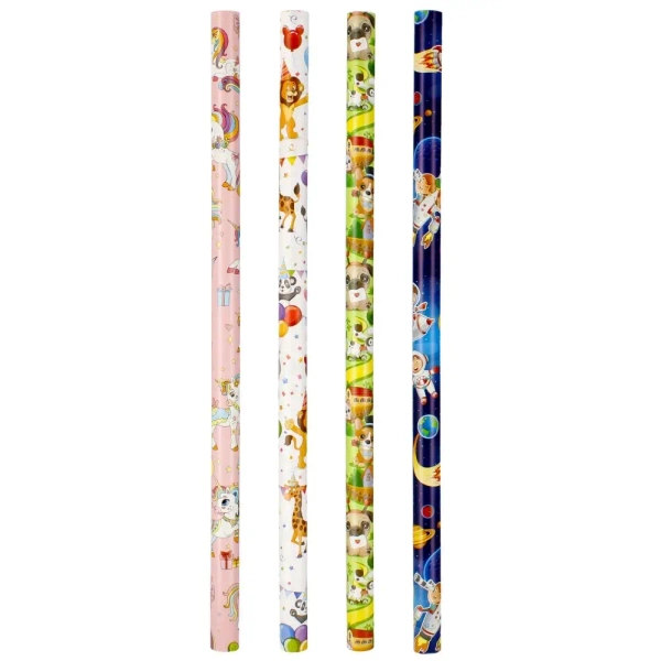 Wybierz papier ozdobny o wymiarach 70 x 200 cm, idealny do pakowania prezentów. Obrazki na papierze są tematyczne i skierowane do dzieci - zarówno chłopców, jak i dziewczynek, z motywami bajkowymi. Zdobią go kolorowe wzory, które przyciągną uwagę każdego malucha.