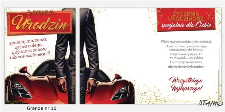 Opis Produktu: Karnet Grande + Koperta (Wzór nr 10) Urodziny Stamp