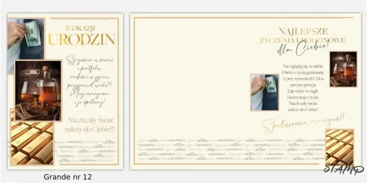 Karnet Grande jest uniwersalny – pasuje na każdą okazję, od urodzin, przez jubileusze, aż po wyjątkowe chwile wymagające specjalnych życzeń. Dzięki unikalnemu wzorowi nr 12 karnet staje się nie tylko nośnikiem życzeń, ale również piękną pamiątką.