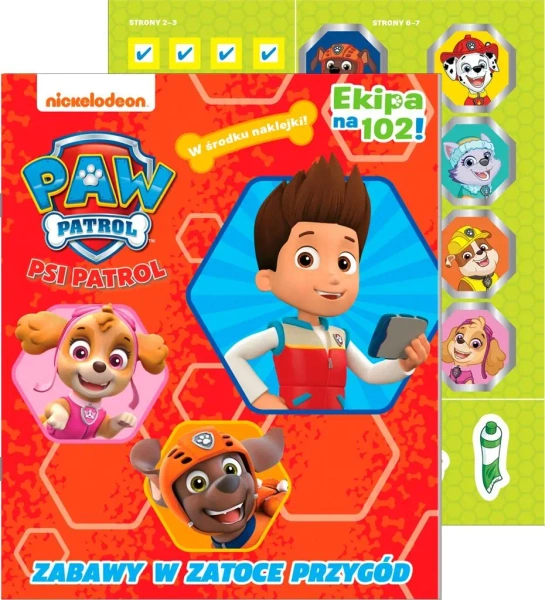 Psi patrol. Ekipa na 102! zawiera zagadki, łamigłówki oraz kolorowanki z ulubionymi bohaterami w roli głównej. W środku również kolorowe naklejki z dzielnymi pieskami! Rezolutne szczenięta Marshall, Rubble, Chase, Rocky, Zuma i Skye oraz dziesięcioletni chłopiec Ryder nigdy nie odmówią pomocy potrzebującym-pomagaj pieskom w ich bohaterskiej misji poprzez rozwiązywanie różnorodnych zadań.