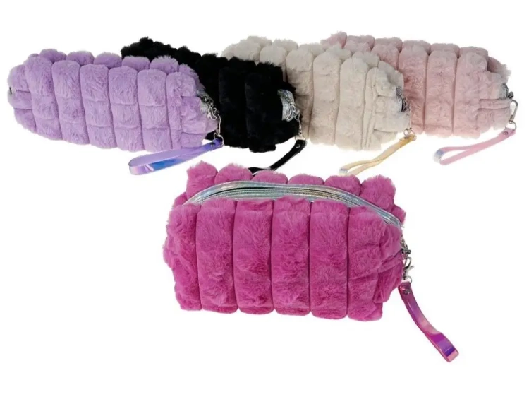 Ta pluszowa kosmetyczka dostępna jest w różnorodnych wzorach, które dostarczane są losowo. Dzięki temu każdy egzemplarz jest wyjątkowy.
