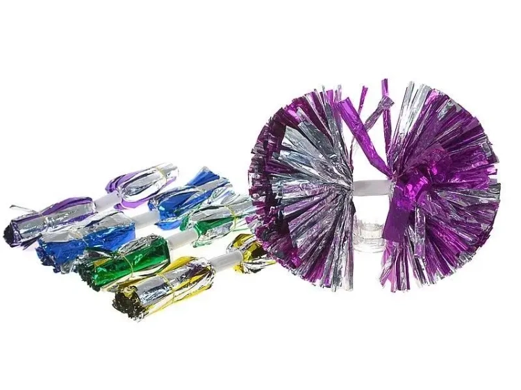 Oferując pompony cheerleaderki dwustronne, nasz produkt wyróżnia się plastikowymi rączkami oraz błyszczącymi paskami, które dodają dynamiki każdemu występowi.