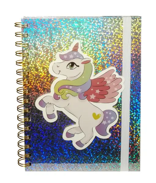 Holograficzny pamiętnik z wizerunkiem jednorożca idealny do notowania wszystkich Twoich tajemnic. W środku znajdują się linie, które ułatwiają zapisywanie. Posiada również praktyczną gumkę. Podane wymiary odpowiadają wielkości pamiętnika.EAN: 5902496192045