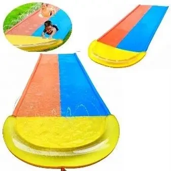 Odkryj radość letnich zabaw dzięki podwójnej ślizgawce wodnej, która mierzy 5 metrów długości i 1,5 metra szerokości, wykonanej z wytrzymałego PVC. To idealne rozwiązanie na upalne dni, zapewniając mnóstwo śmiechu i ochłody dla najmłodszych.