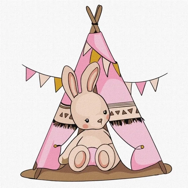 Kids. Malowanie po numerach - Baby Rabbit in the Wigwam 25x25cm